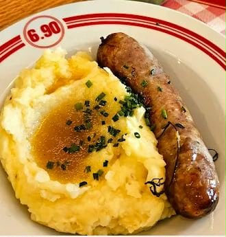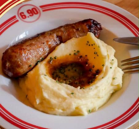 Il faut savoir que la saucisse-purée est un plat français qui existe depuis bien avant la révolution française. Ce plat a traversé les siècles en se bonifiant au fil du temps mais en respectant cette tradition de finesse et de saveur exquise avec des flaveurs de beurre et de lait de vache.