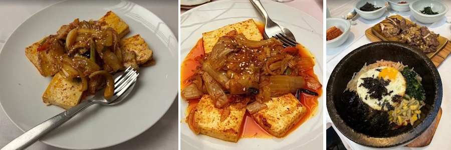 Au menu, le réputé bulgogi de bœuf et le bibimbap (un plat de riz et d’œuf), un excellent steak tartare coréen et quelques surprises comme cette fondue de lotte piquante, cette salade de méduse ou ce fin rouleau de chou au canard.